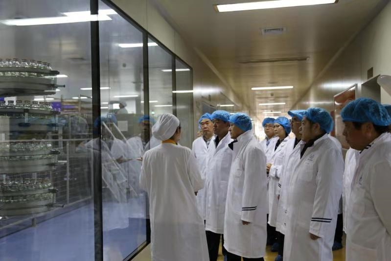 在扬子江药业集团,胡建伟副总经理一行实地参观了扬子江总部高港生产基地园区和大容量注射剂生产车间,并重点询问了注射剂产品的提纯、过滤、检测、包装等工艺流程和产品质量关键控制节点。在泰州中国医药城,胡建伟副总经理听取了项目设计经理的工作汇报,并详细询问了园区功能区布置和建成后的运营及企业入驻等情况。
