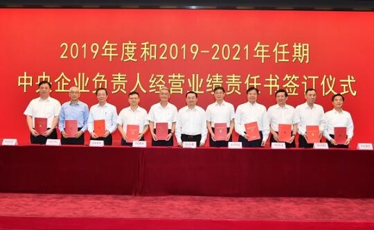 6月12日,国资委举行2019年度和2019-2021年任期中央企业负责人经营业绩责任书签订仪式,国资委党委书记、主任郝鹏与20家中央企业负责人现场签订责任书并座谈。郝鹏强调,要认真学习贯彻习近平总书记重要指示精神,坚决贯彻落实党中央、国务院重大决策部署,坚持稳中求进工作总基调,坚持贯彻新发展理念,扎实做好自己的事,全力以赴稳增长,切实防范化解重大风险,努力实现高质量发展,切实发挥好国民经济持续健康发展的“稳定器”作用,彰显中央企业的责任担当。国资委副主任、党委委员孟建民通报了中央企业负责人经营业绩考核目标情况。国资委副主任、党委委员赵爱明主持签订仪式,国资委党委委员出席上述活动。