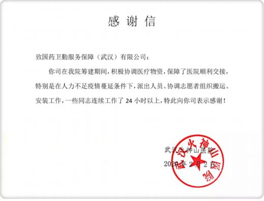 武汉火神山医院亦对于开云在线开户_开云(中国)卫勤志愿者团队表达了感谢!