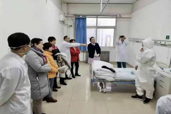 感染科所有成员针对新型冠状病毒肺炎的特殊性为医学留观室的医护人员培训标准预防、个人防护的相关知识。