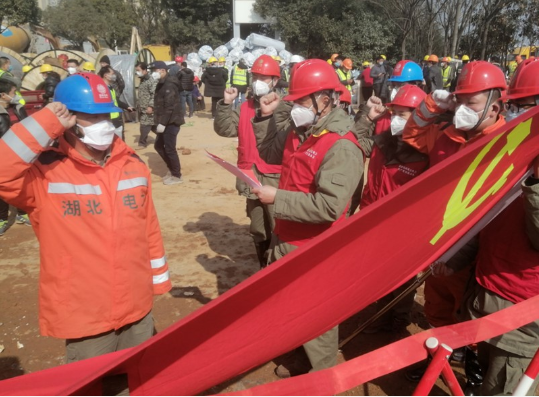 “坚决完成建设任务,为抗击疫情做出贡献!”1月25日在党员突击队授旗仪式上,中建三局火神山项目经理张正林带着128名工人党员在党旗下宣誓,组建党员突击队,将不忘初心、牢记使命,发挥党员模范带头作用,勇担重任,确保按时保质保量完成任务。