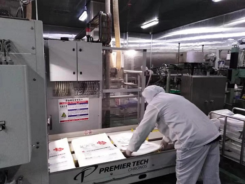 兵器工业集团北化研究院集团新华公司员工每日连续工作生产口罩。