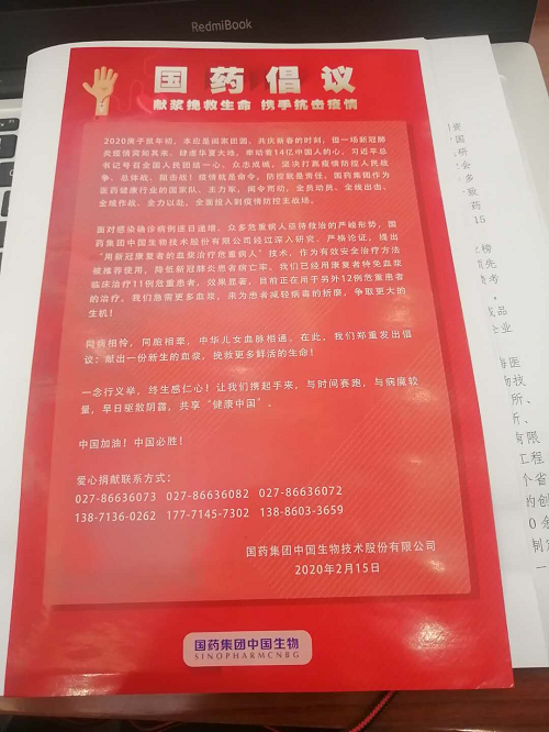 “康复的患者体内有大量的中和抗体,能对抗病毒。在此也恳请康复者,积极来到我们医院,捐献宝贵的血浆,共同拯救还在与病魔斗争的病人!”2月13日,武汉金银潭医院院长张定宇公开呼吁。(工人日报记者 车辉 张翀 刘静)
