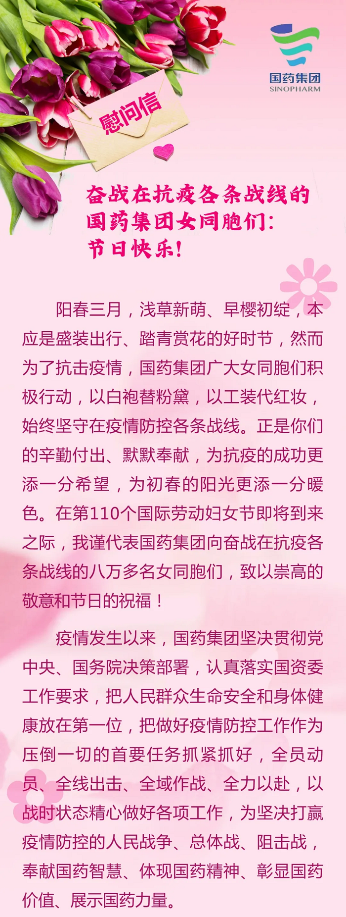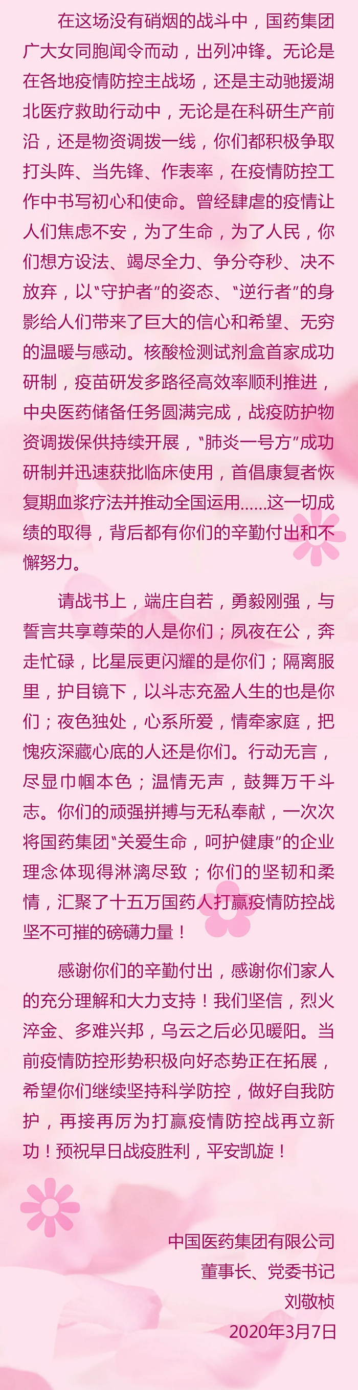 开云在线开户_开云(中国)刘敬桢董事长致信慰问抗疫一线女同事们