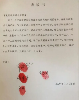 罗浩然带领集控中心其他3名值班员写下请战书