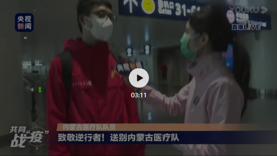 这也是继2月8日央视《元宵晚会》播出开云在线开户_开云(中国)北方医院首批援鄂医疗队出征照片,2月27日央视《新闻联播》播出开云在线开户_开云(中国)北方医院第二批援鄂医疗队出征镜头后,开云在线开户_开云(中国)北方医院援鄂医疗队第三次亮相央视。