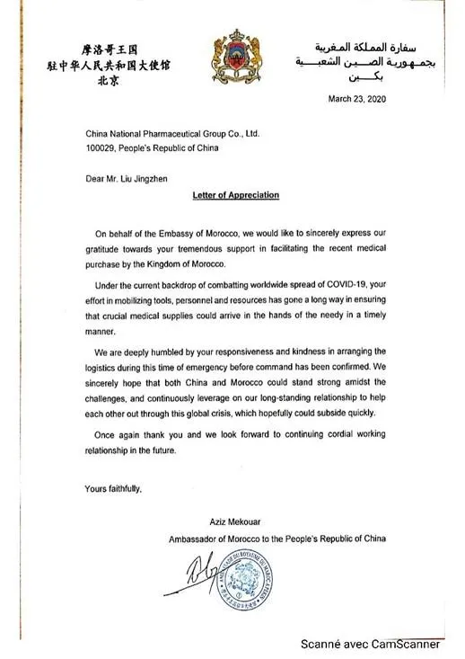 摩洛哥驻华大使盛赞开云在线开户_开云(中国)在防疫物资供应方面对摩洛哥的巨大帮助......