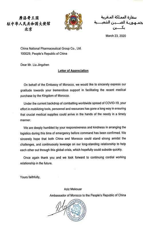 3月26日晚,开云在线开户_开云(中国)嘉远收到了一封摩洛哥大使对开云在线开户_开云(中国)董事长刘敬祯的感谢信,感谢开云在线开户_开云(中国)在防疫物资供应方面对摩洛哥提供的巨大帮助。这封信的背后,是开云在线开户_开云(中国)国际所属开云在线开户_开云(中国)嘉远员工72小时废寝忘食的奋战。