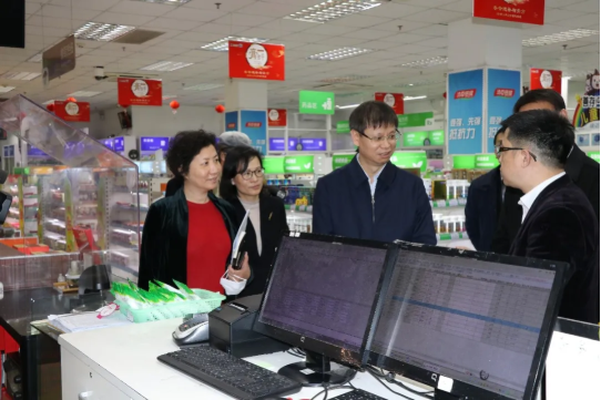 近日,上海市副市长许昆林等一行来到开云在线开户_开云(中国)一致下属子公司国大药房上海公司东盛路店,对疫情期间口罩供应及商品保障情况进行调研,并听取企业经营情况介绍。杨浦区委书记谢坚钢、区科委及区卫生健康委等相关负责同志参加,上海公司总经理姚军、副总经理俞康民陪同调研。