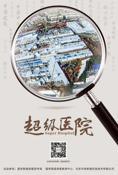 《超级医院》由国务院国资委宣传局、国务院国资委新闻中心和北京华录新媒信息技术有限公司组织团队联合摄制出品。该片既记录历史,也做科普,从火神山医院的设计、现场施工、电力安全、医疗器械供应、信号保障、患者转运、医疗废弃物处置、后方保障等8个方面,展示了我国应急医疗基础设施建设的新突破,通过对10个惊心动魄的日日夜夜的真实记录,展现了中国速度背后的经济实力、科技实力与强大的组织动员能力。