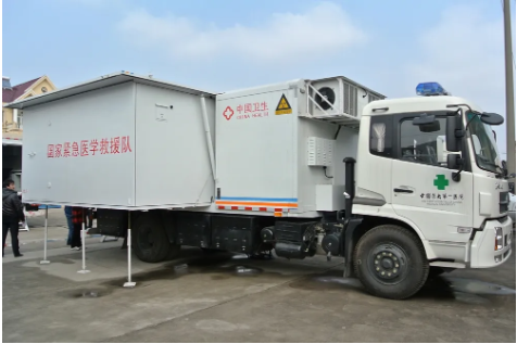 中国航天科工“移动医院”装备涵盖手术车、医技车、通讯指挥车、水电油保障车、生活车、宿营车等近10种特种车辆,展开后相当于一所二级甲等综合医院,具有机动性好、模块化组合、展开部署快速、救治功能范围广等特征,能够完成手术、急诊、急救任务,同时可以保障救援工作人员的基本生活所需。
