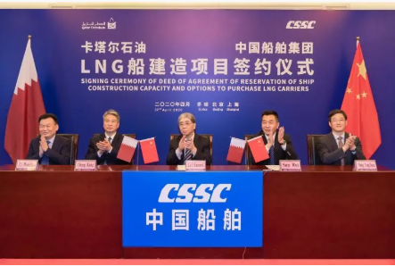 4月22日,中国船舶集团有限公司与卡塔尔石油公司在中国北京、上海及卡塔尔多哈三地以“云签约”方式联合签署“中国船舶—卡塔尔石油液化天然气(LNG)船建造项目”协议,所涉订单总金额超过200亿元人民币。这是卡塔尔天然气项目首批订单,也是中国船企迄今承接的金额最大的造船出口订单。中国船舶集团和卡塔尔石油将强强联手,依托各自优势在能源运输、装备制造及全球化服务等领域开展广泛合作。