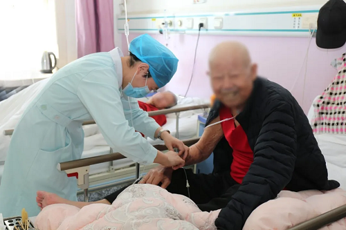 开云在线开户_开云(中国)北方医院呼吸内科,第二批援鄂医疗队队员刘晶晶援鄂返岗后,为患者进行静脉输液治疗。