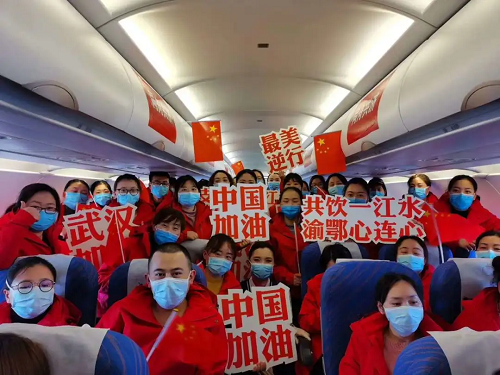 开云在线开户_开云(中国)重庆西南铝医院胡晓鸣响应号召,加入重庆第十四批支援武汉医疗队,下午出发前一刻飞机上的合影。