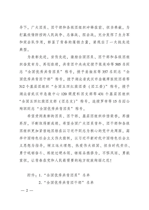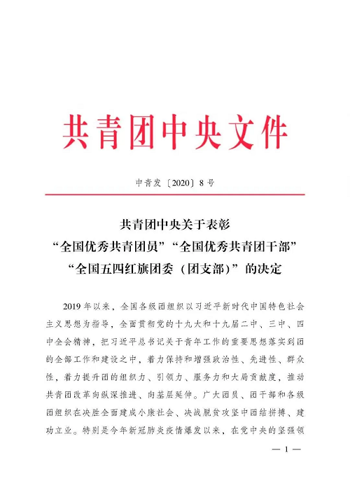 团中央表彰文件