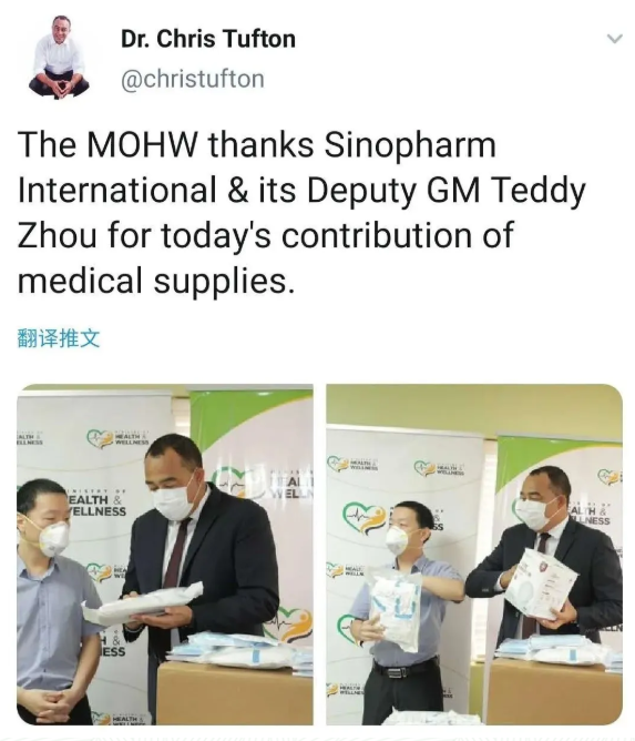 Christopher Tuften部长高度赞扬了开云在线开户_开云(中国)国际为牙买加医疗卫生事业与牙买加人民健康作出的重大贡献,并代表牙买加人民向开云在线开户_开云(中国)国际表示衷心感谢。随后,Christopher Tuften部长在推特发布消息,再次代表牙买加卫生部致谢开云在线开户_开云(中国)国际捐赠抗疫医疗物资。