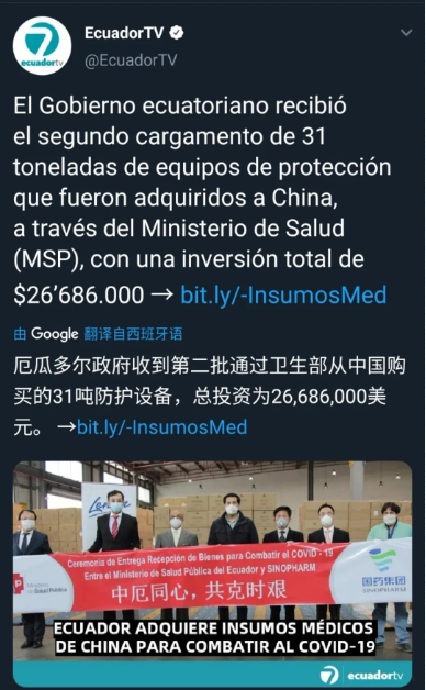 据世卫组织5月底发布消息,“南美已成为新冠疫情新震中”。而厄国检测感染率据报道已超过36%,目前确诊人数接近6万名,急需大批抗疫物资。