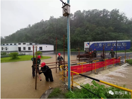 在鄱阳湖下游,中核集团同方江新所在地江湖水位快速上涨,面对异常罕见的暴雨内涝和洪水迅猛上涨的严峻形势,紧急动员党员干部和职工群众,迅速、积极、主动投入到防汛抗洪抢险救灾中去,把洪水造成的损失尽量降低到最小程度。