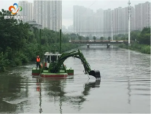 连续的强降雨也导致武汉市东湖水位上涨,为了及时抽排湖水,中国交建中交疏浚研究中心“武航一号”两栖式环保疏浚船被紧急调往抗洪一线,清淤港渠,提升过水能力。实施清淤后,港渠过水流量可以达到每秒90立方米,有效提升东湖的泄洪能力。