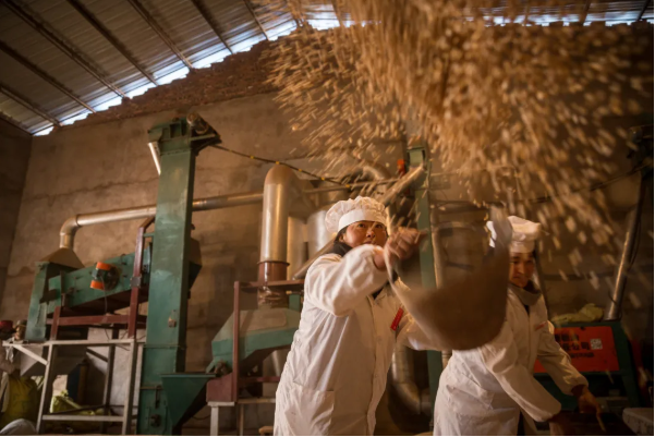 ▲东风公司在西藏贡觉县投资援建糌粑加工厂,有力促进了当地农牧民增收脱贫。