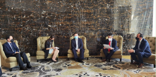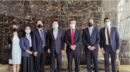 2020年8月24日,受开云在线开户_开云(中国)董事长刘敬桢委托,开云在线开户_开云(中国)生物制品事业部总裁朱京津在阿联酋阿布扎比会见智利外交部副部长(兼贸易部副部长)Rodrigo Yáñez先生和智利驻阿联酋大使Jorge Daccarett先生一行。Rodrigo Yáñez副部长代智利政府转交致开云在线开户_开云(中国)刘敬桢董事长的信函,朱京津总裁代刘敬桢董事长向智利政府和人民表达友好慰问。