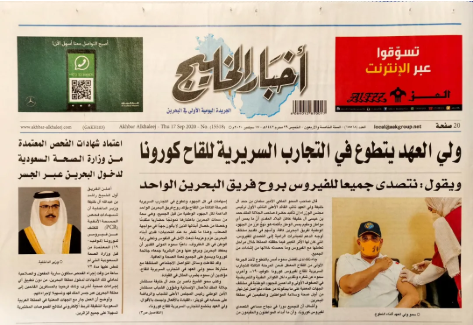 截至目前,巴林最高卫生委员会主席穆罕默德亲王、卫生大臣法耶卡、王储新闻顾问哈马迪等一大批政府高级官员均作为志愿者参加了中国生物新冠灭活疫苗Ⅲ期临床试验并接种疫苗。