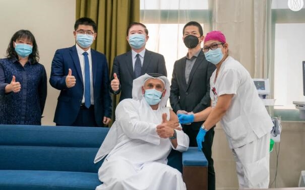 9月15日,阿联酋《海湾新闻》报道,阿联酋卫生和预防部部长阿卜杜拉赫曼•奥维斯宣布,由于中国研发的新冠疫苗在第三期临床试验中被证明安全有效,该国已经紧急批准使用这批新冠疫苗。随即,奥维斯等多名阿联酋内阁成员,以及阿一线医护人员、教师、警察和海关人员等先后接种了中生新冠疫苗。11月3日,阿联酋副总统兼总理、迪拜酋长阿勒马克图姆在社交媒体分享其正接种中生新冠病毒疫苗的照片,他写道:“在我今天接种新冠疫苗时我们希望所有人安全、健康,我们为我们的团队而骄傲,正是他们没日没夜地工作使得阿联酋得以接种疫苗。”