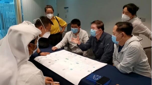 科研人员在阿联酋与外方人员交流三期临床试验