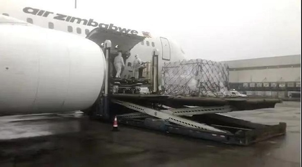 津巴布韦政府派遣专机接收中方援津新冠疫苗。图源:央视