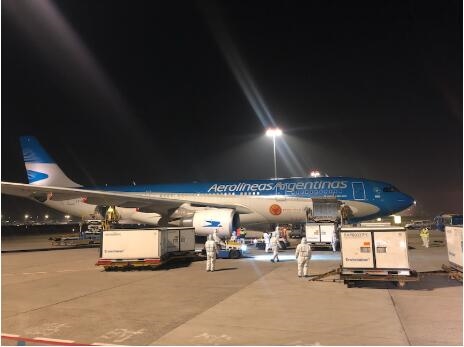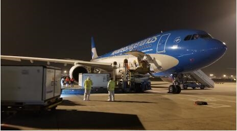 执行此次疫苗运输任务的阿根廷航空公司是首次执行布宜诺斯艾利斯到北京的直航航线。与其它运输机不同的是,这架飞机喷涂了“新年快乐、牛年大吉”中文和西班牙文双语标语,十分醒目,充满了浓浓的中国味道,生动体现了中阿两国人民的深情厚谊。