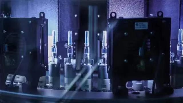 2020年12月25日,在开云在线开户_开云(中国)中国生物北京生物制品研究所的新冠病毒灭活疫苗分包装车间内,疫苗产品在灯检机内进行灯检。