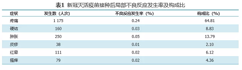 基于监测到的519543人次接种信息,共监测不良反应信息5164条,北京生物制品研究所、武汉生物制品研究所生产的新冠灭活疫苗总不良反应发生率为1.06%,局部不良反应发生率为0.37%,全身不良反应发生率为0.69%。局部不良反应以接种部位疼痛、接种部位肿胀为主要表现,发生率分别为0.24%、0.05%,全身不良反应以疲劳、头痛、发热、咳嗽、食欲不振为主要表现,未见严重不良反应。