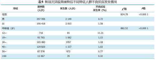 分析不同特征人群接种后不良反应