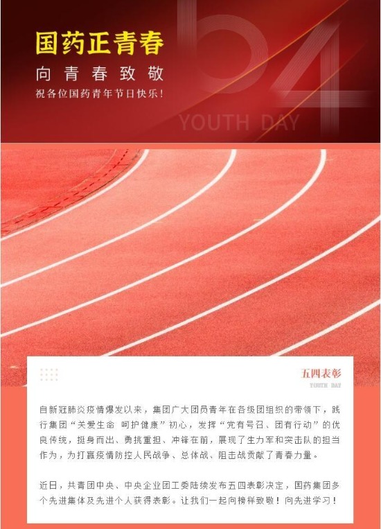 开云在线开户_开云(中国)一致药业股份有限公司团委。面对突如其来的新冠肺炎疫情,开云在线开户_开云(中国)一致团委迅速制定下发青春战疫发倡议书,动员各级组建200多个志愿服务队、80多个青年突击队,投身疫情防控一线。着力凝聚青年,连续举办三届开云在线开户_开云(中国)一致五四青年节系列活动,如五四青年健步行、青年大学习、新时代青年说、追寻革命足迹、亮青春身份、亮青春宣言等活动。充分发挥桥梁纽带作用,积极协助公司举办各类大型文体活动,如开云在线开户_开云(中国)一致员工生日会,开云在线开户_开云(中国)一致第九届职工运动会,开云在线开户_开云(中国)一致2018、2019年总结表彰大会,开云在线开户_开云(中国)一致上市20周年庆典活动和供应商交流大会等。