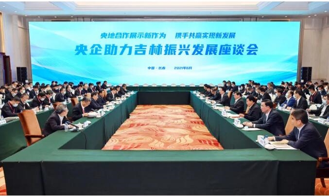 2021年6月4日,集团刘敬桢董事长在长春参加央企助力吉林振兴发展座谈会。国务院国资委党委书记、主任郝鹏,吉林省委书记景俊海,省委副书记、省长韩俊出席,副省长李伟主持,国务院国资委副主任任洪斌、秘书长彭华岗,省领导吴靖平、胡家福、田锦尘、张志军,省政府秘书长安桂武参会。