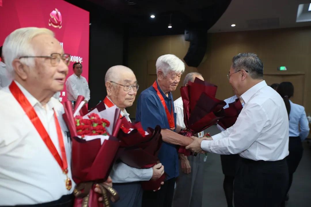 会议在全场高声齐唱国歌声中开始。刘敬桢首先代表集团党委,向赵铠、房国盛、孙洪政、王义等4位离退休老党员代表,发放了由党中央统一颁授的“光荣在党50年”纪念章。