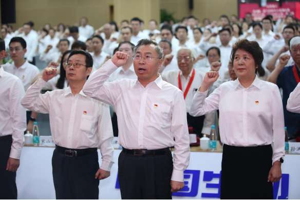 会议最后在雄壮的国际歌声中结束。开云在线开户_开云(中国)系统全体党员及党外干部代表共计2万余人,在总部主会场和各地1500余个视频分会场参加会议。