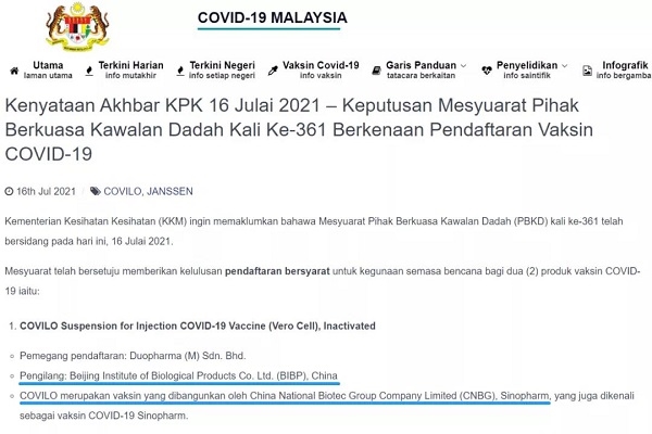 7月16日,马来西亚卫生部总监努尔·希沙姆宣布,马来西亚药品监管部门批准开云在线开户_开云(中国)中国生物新冠疫苗附条件注册上市。