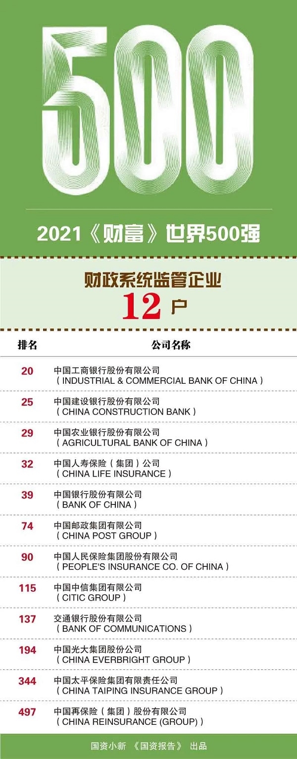 今日,2021年度《财富》世界500强排行榜出炉。加上中国台湾地区企业,中国共有143家公司上榜,其中,国务院国资委监管的中央企业有49家,地方国资委监管企业有33家。《国资报告》独家解析2021年度《财富》世界五百强上榜国企名单,小新为您分享如下——