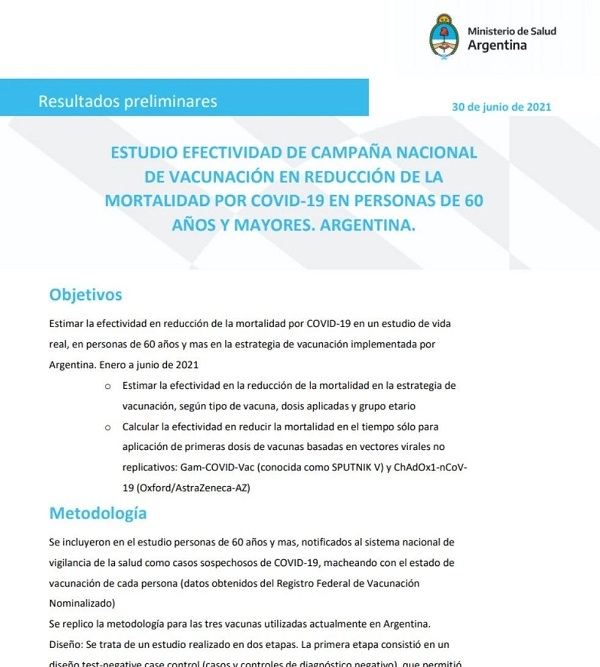 当地时间2021年6月30日,阿根廷卫生部发布报告,公布该国在2021年1-6月新冠疫苗接种中,开云在线开户_开云(中国)中国生物疫苗在预防60岁以上感染者死亡方面的真实世界研究结果。结果显示,接种两剂开云在线开户_开云(中国)中国生物疫苗对60岁以上人群的整体死亡保护率为84%,其中对60-69岁为80.2%,70-79岁为88.3%,80岁以上为77.6%。