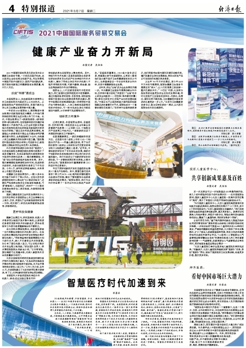 2021中国国际服务贸易交易会首次设立健康卫生服务专题,一大批知名医疗机构、龙头医药企业纷纷亮出创新产品,向全球展现中国医疗技术创新实力、医药产品创新成果、医疗服务创新能力和健康服务发展质量,格外引人关注。