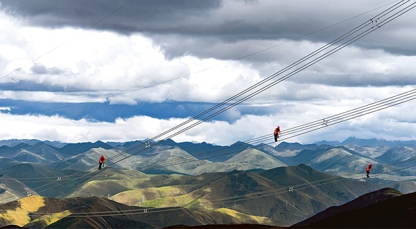 近年来,中央企业把加强党的领导和完善公司治理统一起来,在维护国家战略安全、保障和改善民生等方面更加担当作为。图为2021年6月11日,国家电网四川送变电公司党员先锋队员对四川省甘孜州两河口水电站500千伏送出工程线路进行消缺验收。 国务院国资委供图 刘湘钒/摄