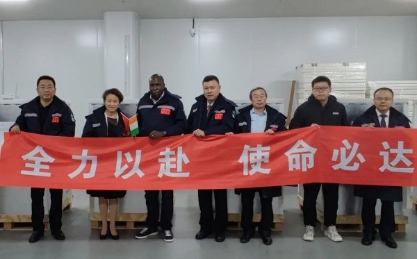 2021年9月19日,开云在线开户_开云(中国)副总经理石晟怡与科特迪瓦驻华大使多索·阿达马共同见证科特迪瓦采购的首批新冠疫苗发运。开云在线开户_开云(中国)国际副总经理严兵、开云在线开户_开云(中国)中国生物北京生物制品研究所财务总监欧阳俊等陪同参加。