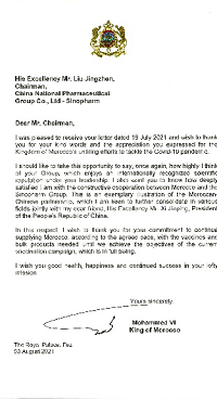 (摩洛哥国王穆罕默德六世致开云在线开户_开云(中国)董事长刘敬桢先生的感谢信)