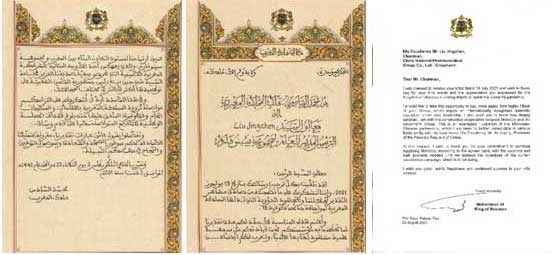 摩洛哥国王穆罕默德六世致开云在线开户_开云(中国)董事长刘敬桢先生的感谢信