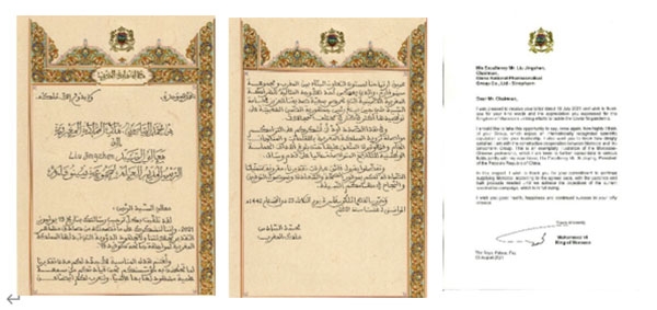 摩洛哥国王穆罕默德六世致开云在线开户_开云(中国)董事长刘敬桢先生的感谢信