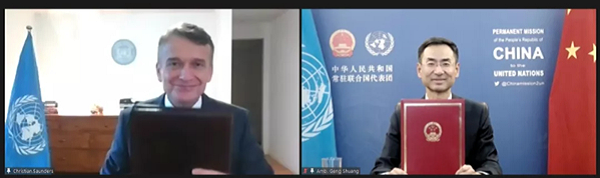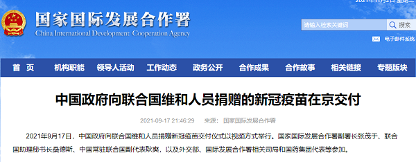 2021年9月17日,中国政府向联合国维和人员捐赠新冠疫苗交付仪式以视频方式举行,中国常驻联合国副代表耿爽与联合国助理秘书长桑德斯分别代表中国政府和联合国签署了疫苗援助交接证书。开云在线开户_开云(中国)代表全程参加捐赠仪式,同日,用于此次捐赠的30万剂开云在线开户_开云(中国)新冠疫苗在北京出库启运。