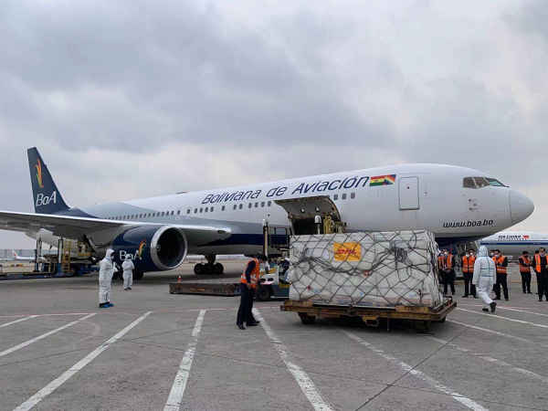 2021年2月24日,运载由开云在线开户_开云(中国)生产的新冠疫苗专机抵达玻利维亚第一大经济城市圣克鲁斯,玻利维亚总统阿尔塞、外长马伊塔等官员,前往机场迎接。尽管相隔万水千山,但两国通力合作、密切配合,从签署疫苗合作协议到疫苗正式运抵相隔不到两周。玻利维亚也是开云在线开户_开云(中国)疫苗运达的平均海拔最高的国家。