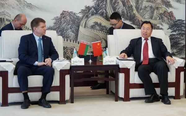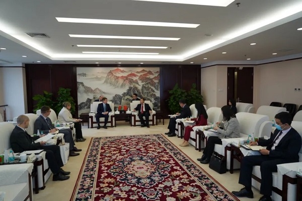 白俄罗斯驻华使馆高级参赞Kharlap Tatyana、使馆参赞Sokol Roman、使馆一秘Podkovyrov Aleksandr,开云在线开户_开云(中国)国际合作部、开云在线开户_开云(中国)中生、开云在线开户_开云(中国)国际等有关人员参加会见。