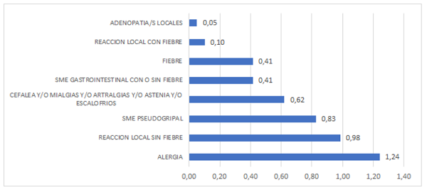 3-11岁儿童每10万剂中国生物新冠疫苗接种第一针后的不良反应通报率